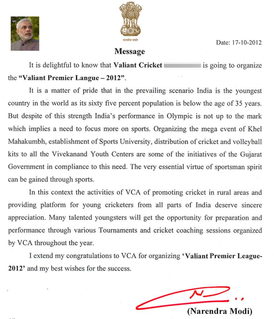 VPL became an Iconic League in 2012, When Prime Minister Shri Narendra Modi ji gave his best wishes to VPL, at that time he was the Chief Minister of Gujarat. First Edition of VPL has six teams then after VPL consists of five teams, each team plays one other. Hence four matches are played in the playoffs and the top two teams clash in the mega finals. Valiant Premier League’s team owners are associated with VPL only to motivate the rural players, in which there is no monetary gains for the team owners. The team’s ownership is only with Valiant Cricket, whose purpose is to promote only rural cricketers.